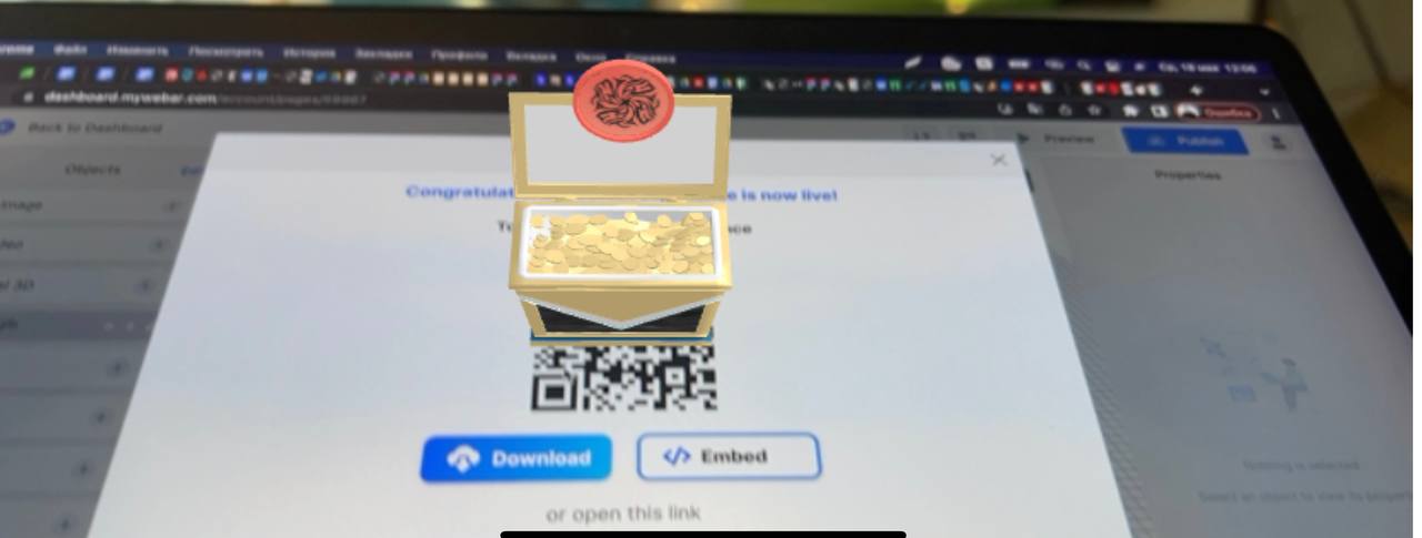 The mywebar Web AR framework was chosen as the platform. Web AR allows you to use augmented reality without having to download an application, and since it is web-based, it integrates easily with other web services, including web3.